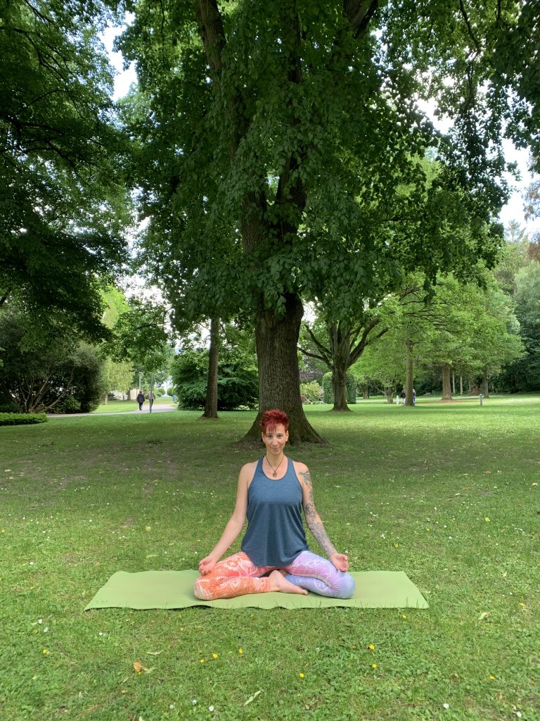 In den warmen Monaten treffen wir uns im Kurpark Hennef Geistingen, unter den schönen Schattenspendenden alten Bäumen um gemeinsam Yoga zu praktizieren.